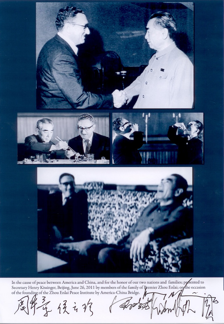 “To the Zhou Enlai Peace Institute — Henry A. Kissinger.”